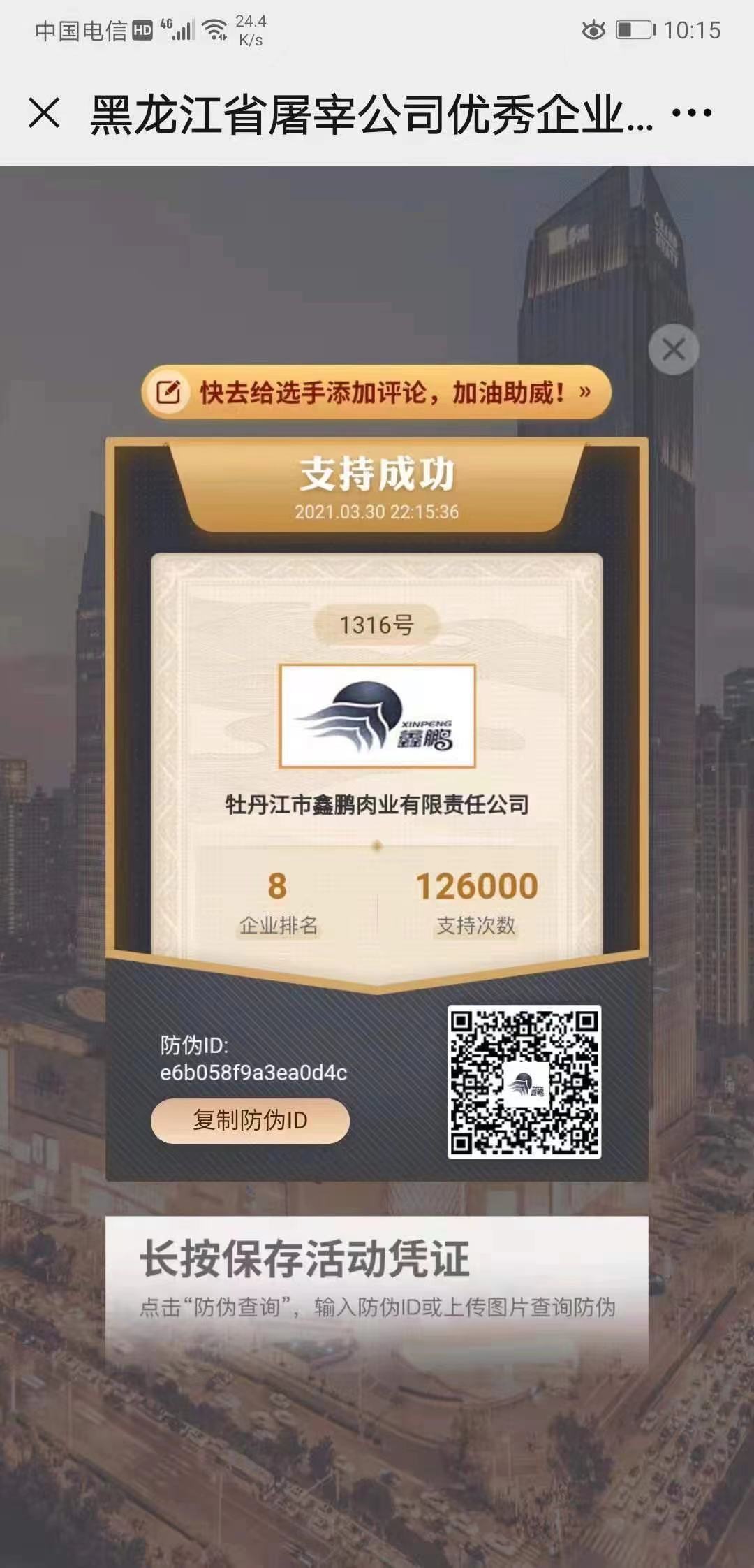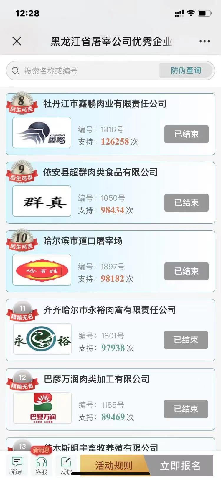 牡丹江市鑫鵬肉業(yè)有限責任公司參加黑龍江省屠宰行業(yè)誠信企業(yè)評選名列第八!